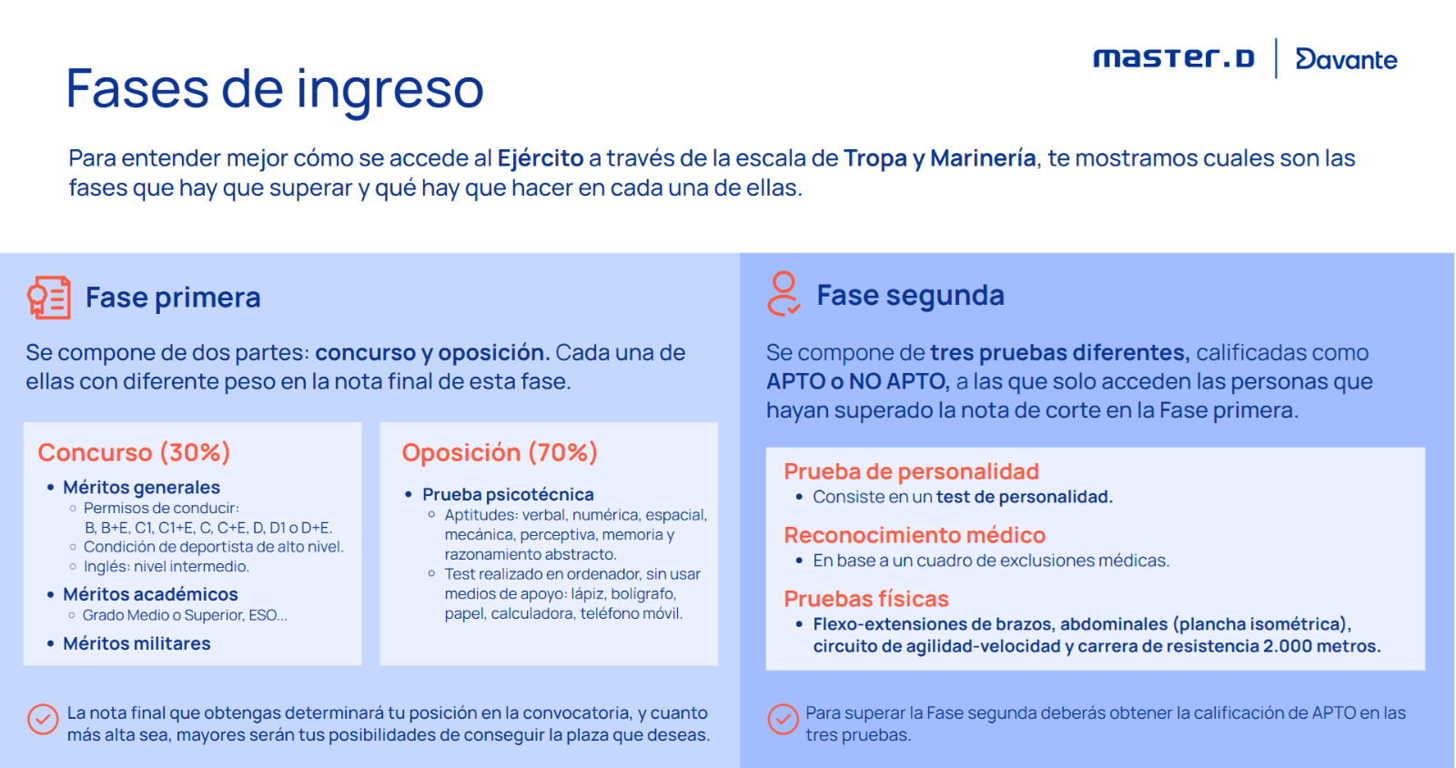 Además, quizá te estés preguntando qué ocurre una vez superadas todas las pruebas de la oposición. A continuación, te mostramos cuáles son los siguientes pasos que deberás seguir para incorporarte a las Fuerzas Armadas españolas.